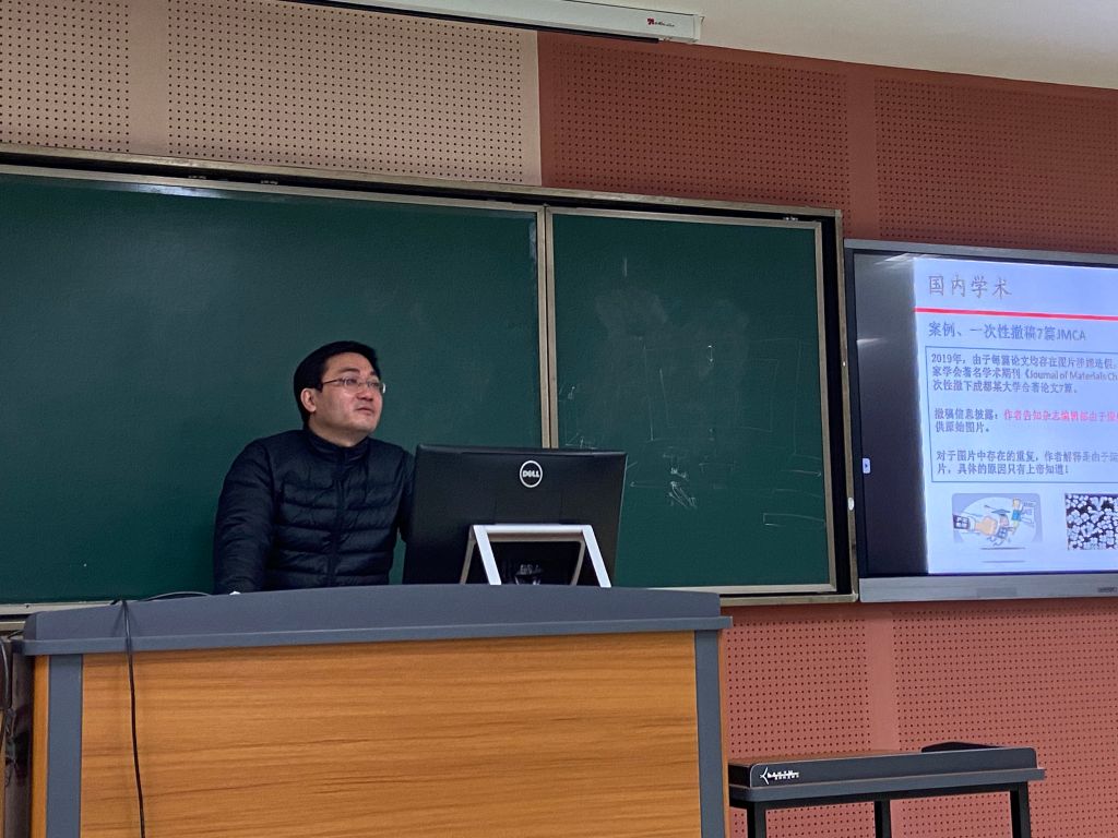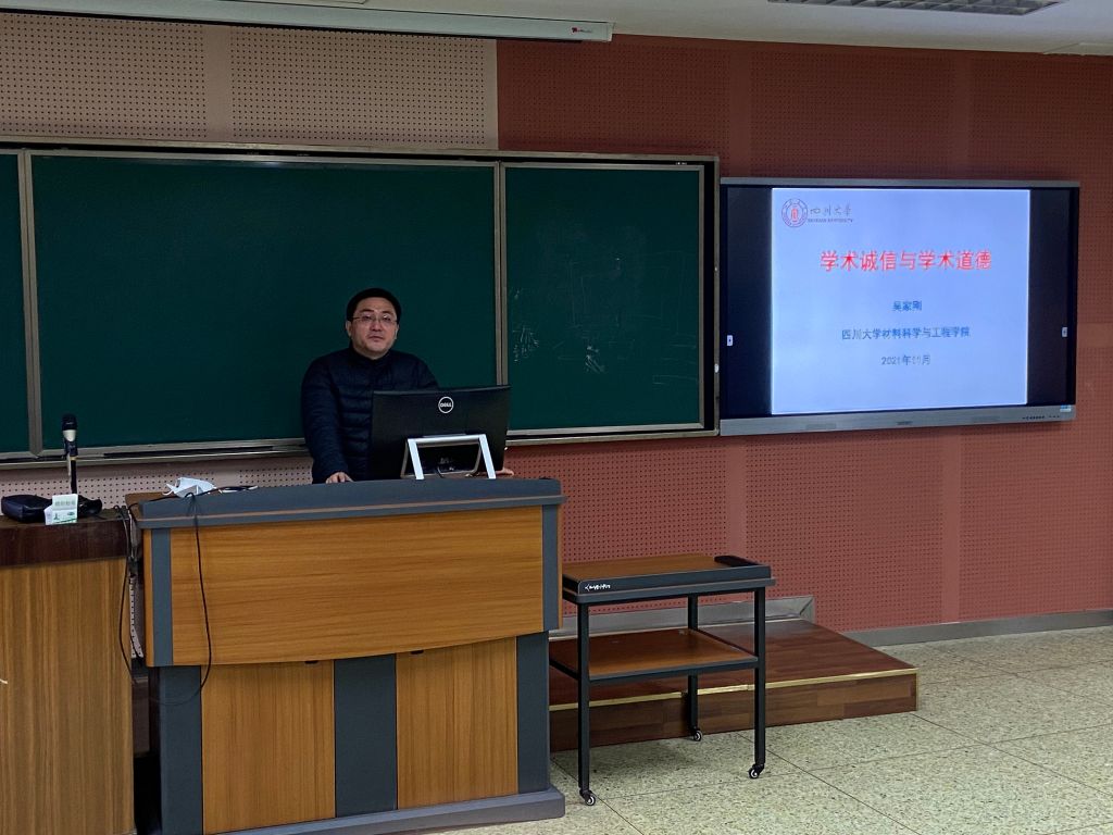 为了进一步加强我校学术诚信建设,强化学术道德教育,树立学术规范理念,严厉杜绝学术不端问题,11月11日,研究生院231学术报告厅中,德赢官网副院长吴家刚教授在“学术规范与研究生论文写作指导”必修课上就“学术诚信”这一专题为同学们进行了授课,德赢AC米兰中国官方网站2021级全体硕士和博士研究生参加。